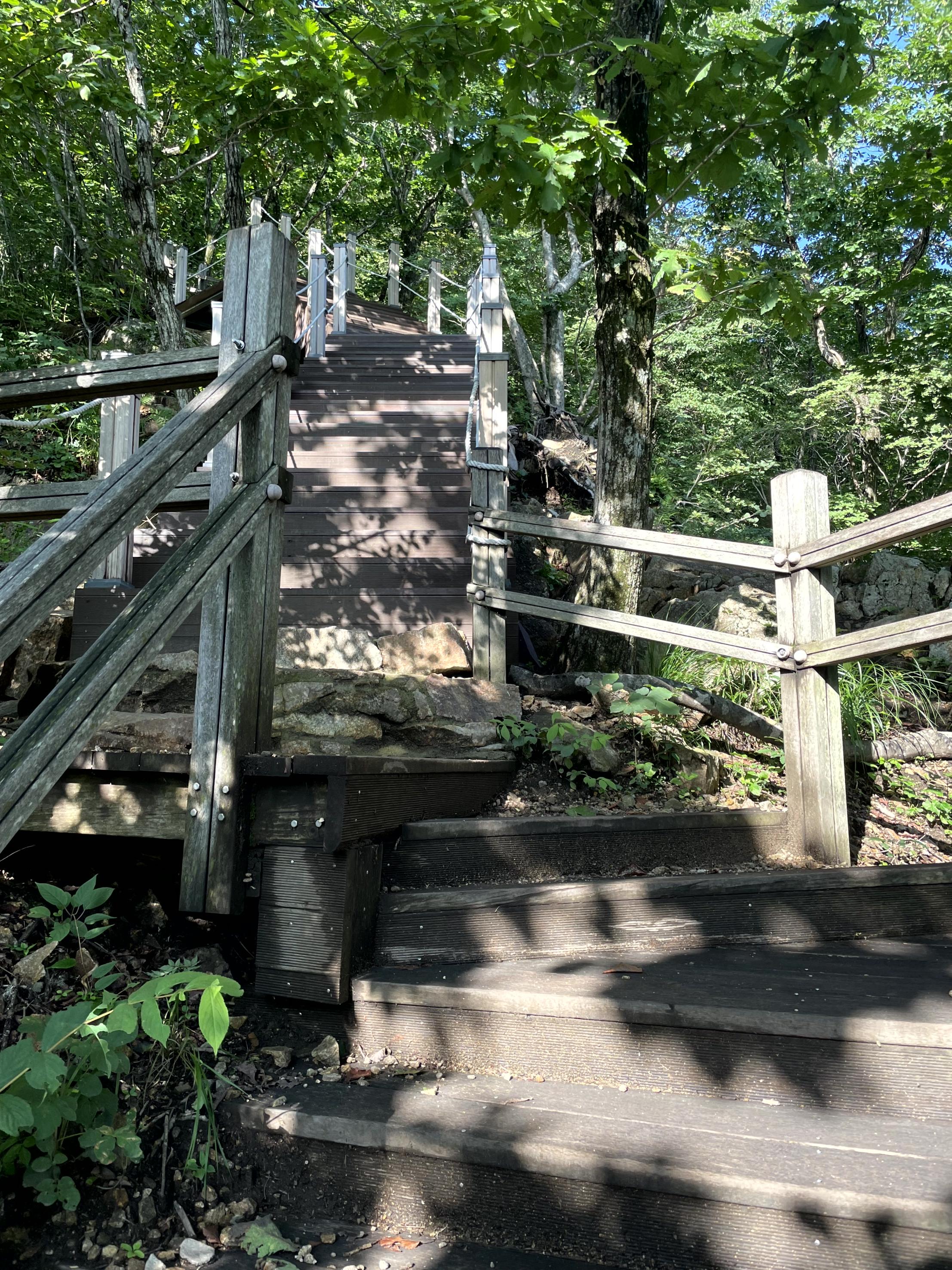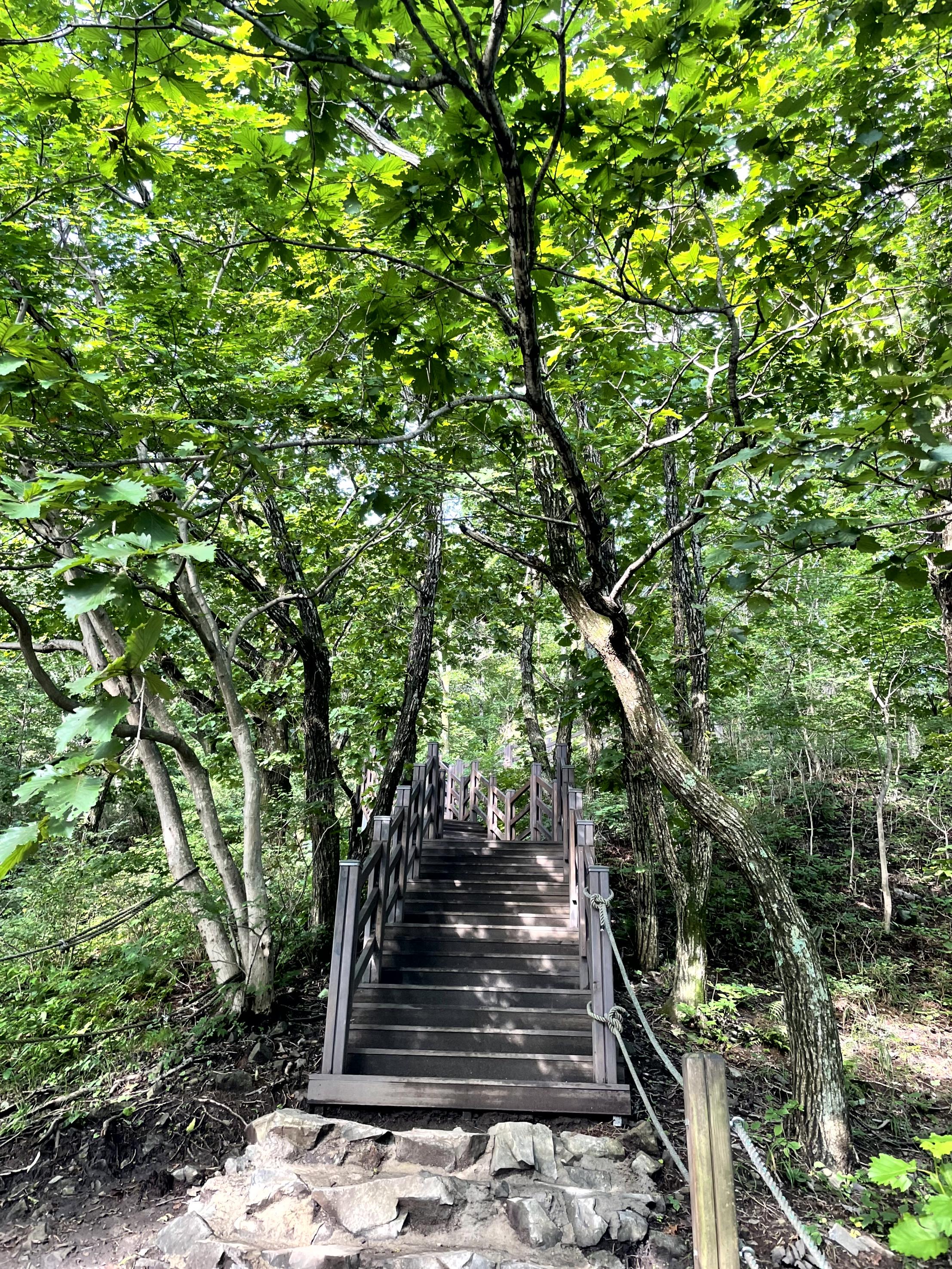 중봉을 향하는 600개가 넘는 계단과의 한숨