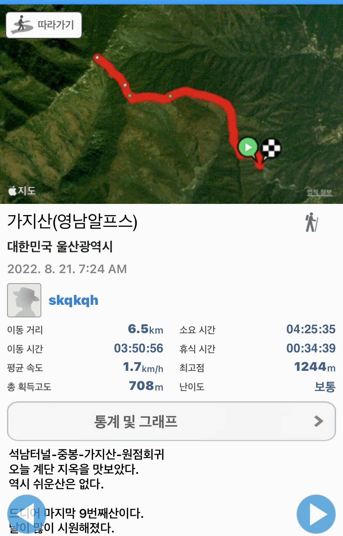 테이핑도 안하고 스틱도 안하고 등산을 했는데 계단이 많아서 그런가 하산길에 무릅에 너무 무리가 왔다. 테이핑 잊지말고 꼭 하고 다녀야겠다.