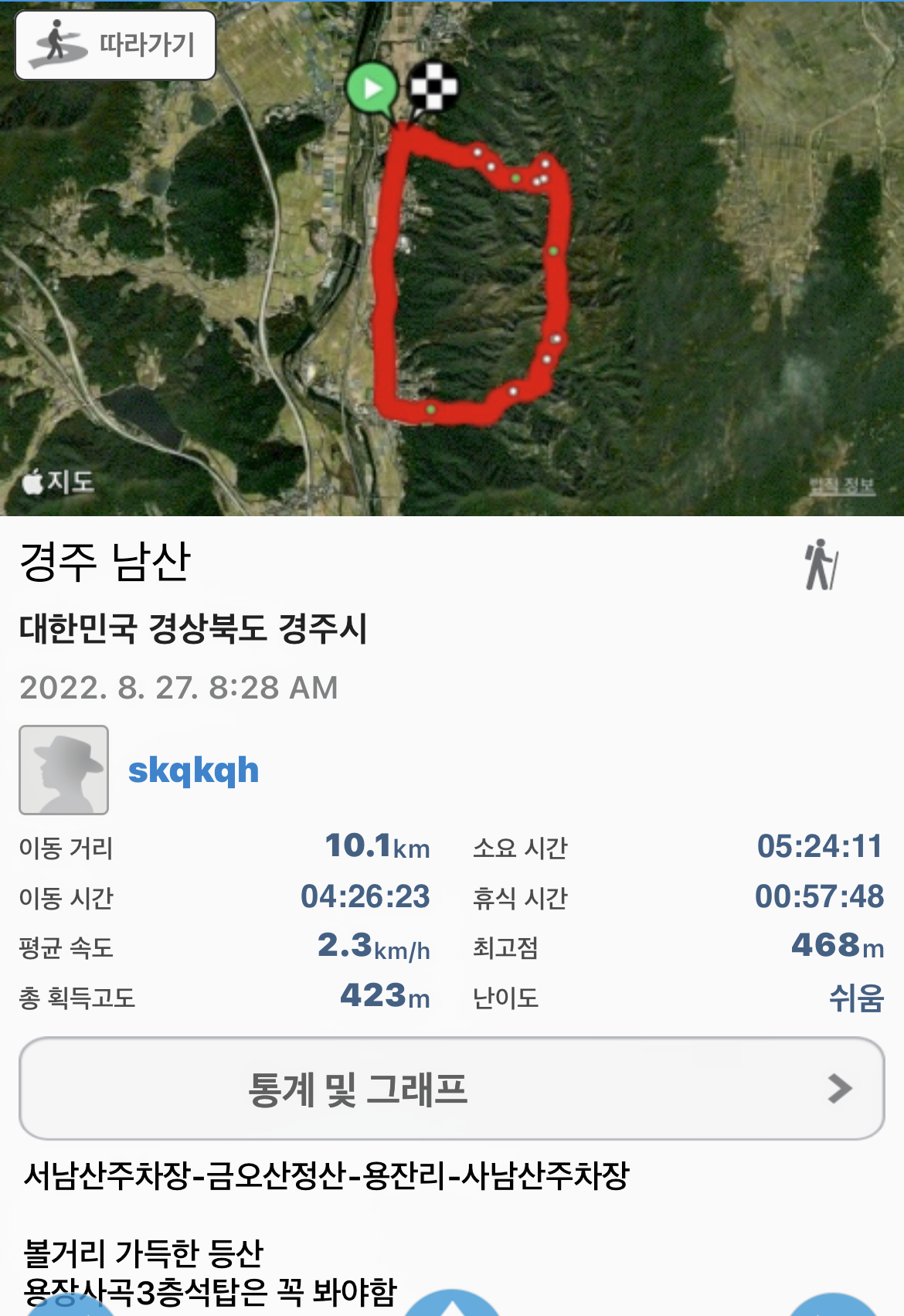 카테고리 없음 경주 남산 by skqkqh 2022. 9. 1. 볼거리 가득한 남산 우리집 어린이들도 너무 좋아했음 용장사곡3층석탑은 너무 멋있었다. 석탑을보고 원점회귀냐 계속 내려가나 고민 후 내려가는길을 선택했다. 조금 후회된다. 정상으로 돌아가서 포석정 쪽으로 갈껄하는 아쉬움 우리집 어린이들 너무 지처 포석정은 결국 포기하고 집으로 돌아왔다. 공유하기 게시글 관리 보다