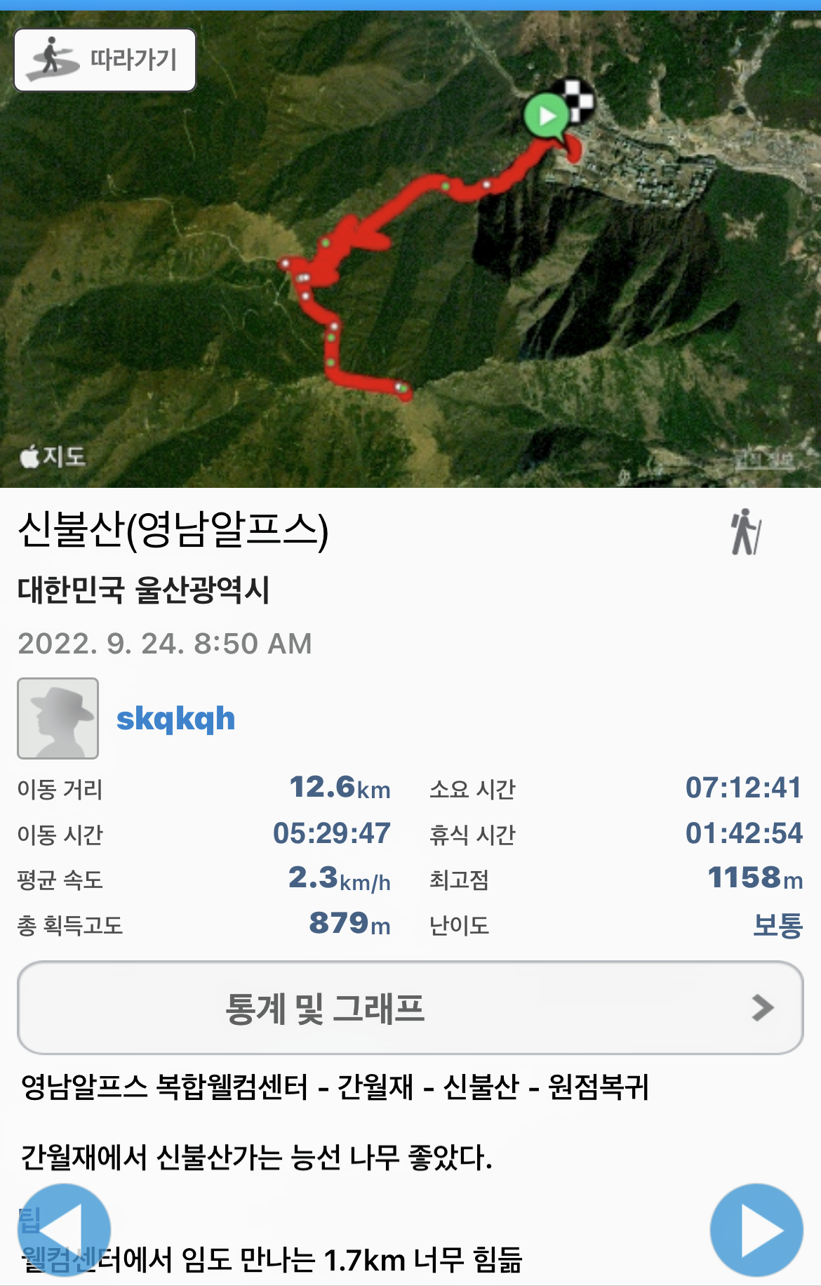 카테고리 없음 신불산 (영남알프스) 영남알프스 복합웰컴센터 by skqkqh 2022. 10. 5. 억새보러 가보자! 처음 계획은 신불산자연휴양림에서 출발이었다. 자연휴양림 오픈시간과 주차 및 입장료를 생각해서 복합웰컴센터에서 출발 하기로 결정했다. 임도길이 편할 줄 알았는데 임도 만나기 까지 가는길이 힘들었다. 그나마 임도길이 배내공영주차장에서 간월재 올라가는 길보다 뷰가 좋아서 지루하지는 않았다. 간월재에서 신불산 능선길 너무 좋았다. 최고! 너무 늦은 시간과 바닥난 체력으로 인해 하산길 폭포는 포기 공유하기 게시글 관리 보다